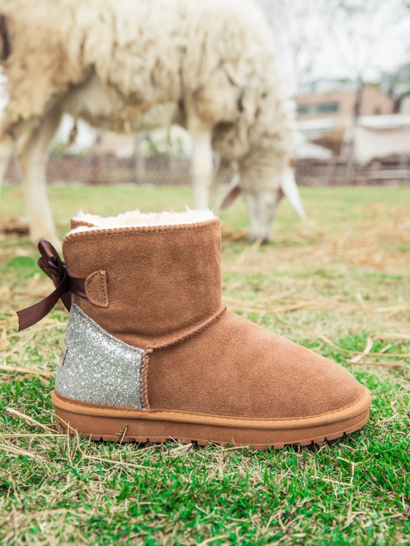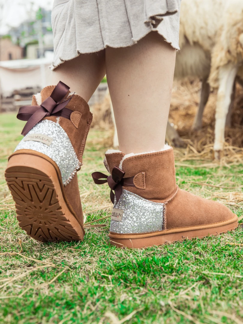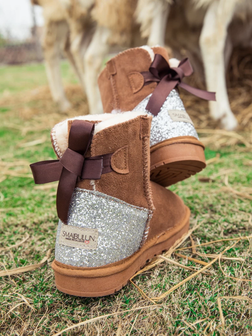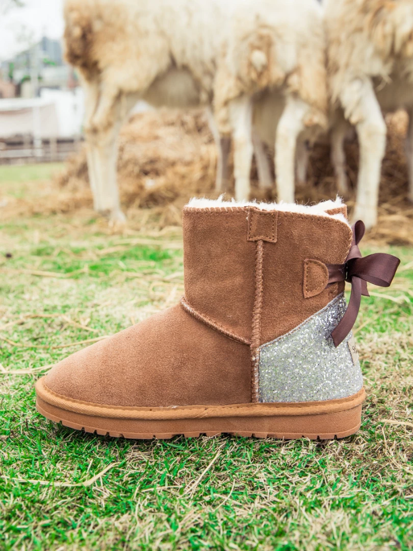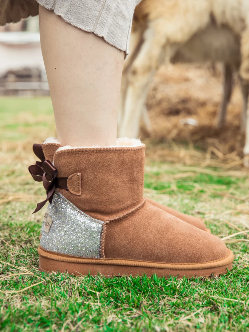 XH SMAIBULUN UGG™ | Back Sequins Ribbon Bow Faux Fur-Lined Suede Boots – Chestnut NEW ARRIVALS