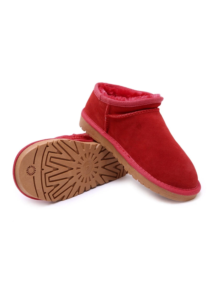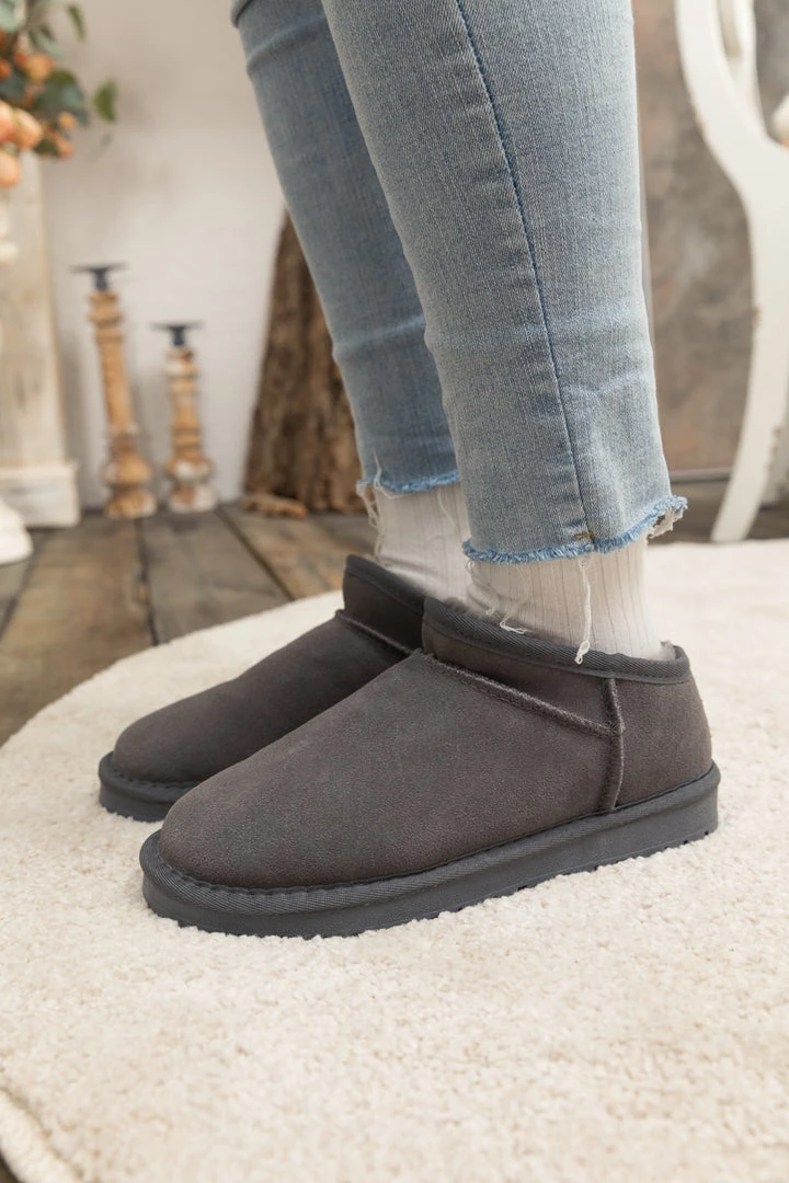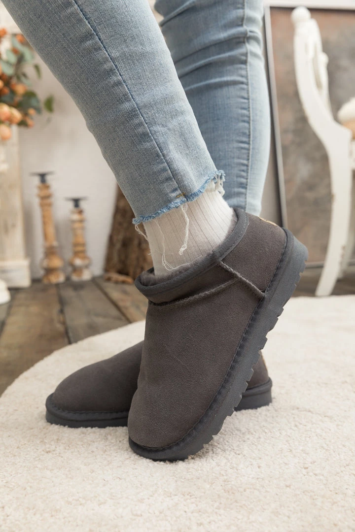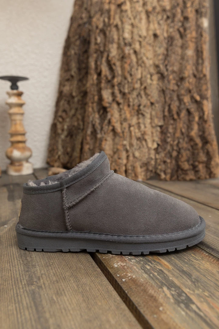 Stay warm in chic, eye-catching style when you slip into these genuine suede boots featuring a plush faux fur-lining and unique low cut.