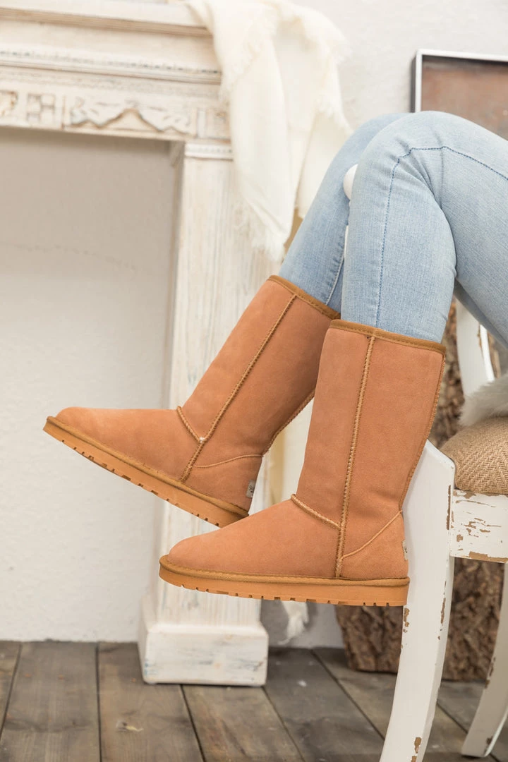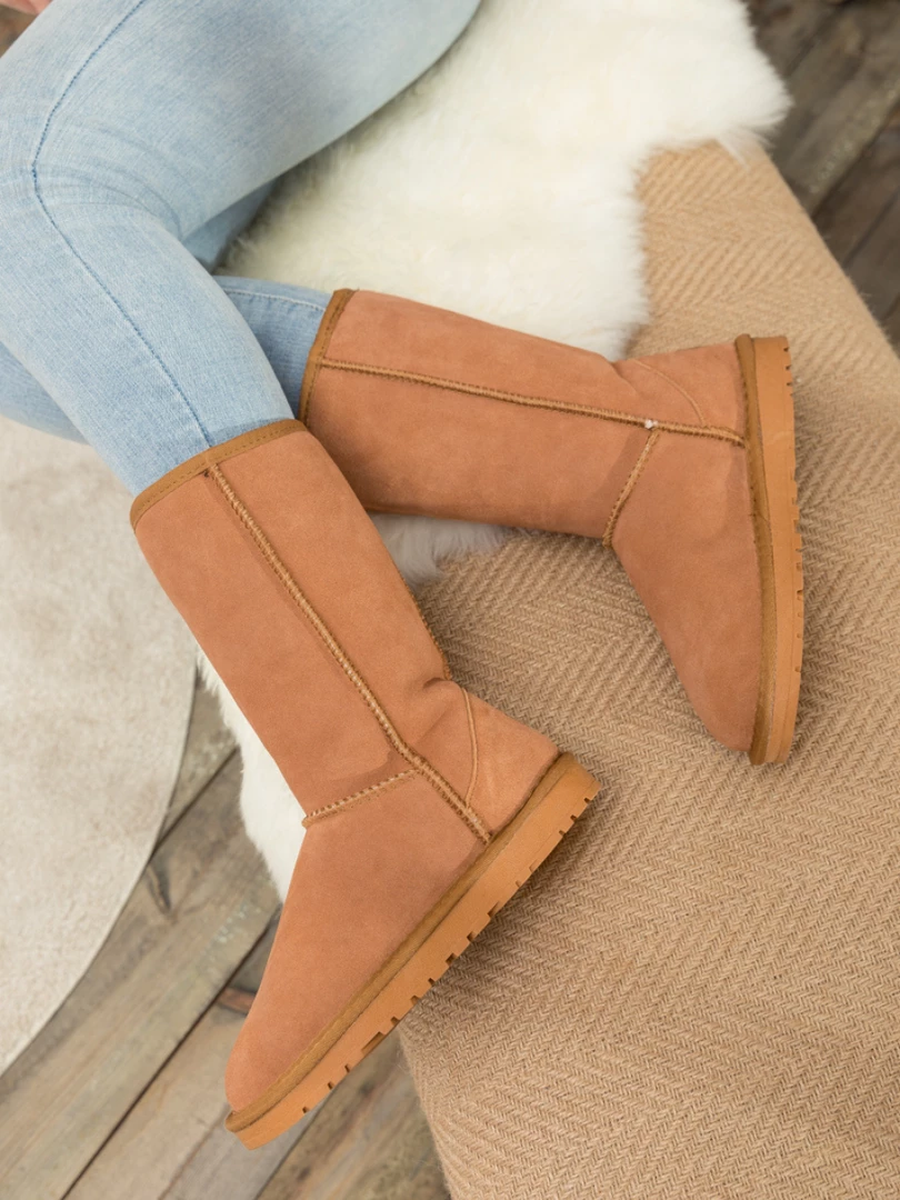 Stay warm in chic, eye-catching style when you pull on these genuine suede boots featuring a plush faux fur-lining.
