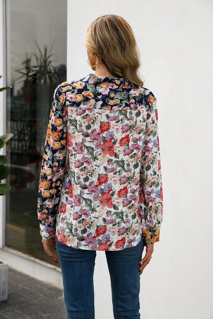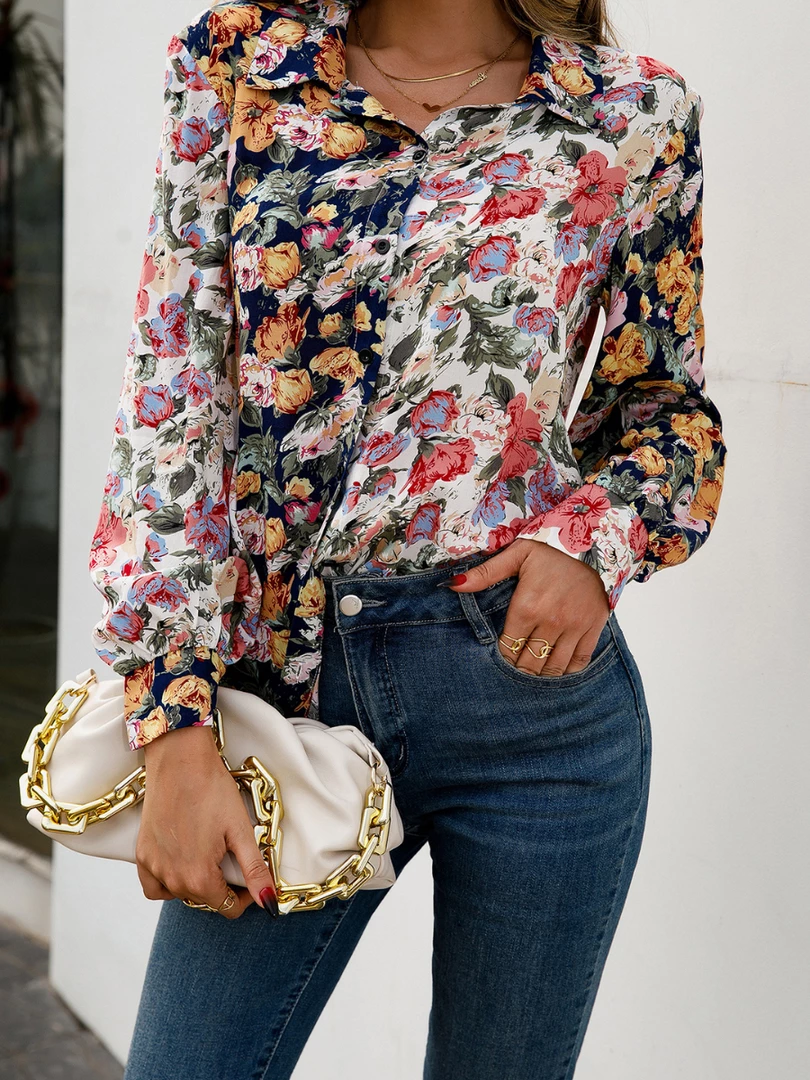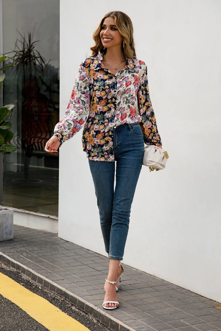 Expand your style options with this long-sleeve top featuring a classic button-up versatility and lovely floral pattern for a feminine touch.