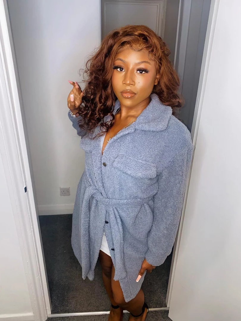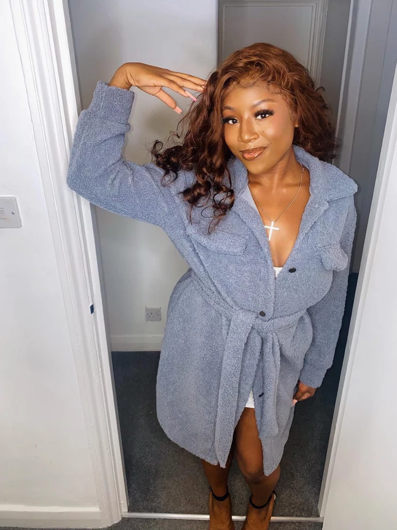 Banish the cold-weather blues with this long button-up coat featuring super cozy plush fabric and built-in pockets for stowing your essentials.