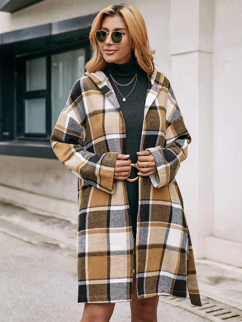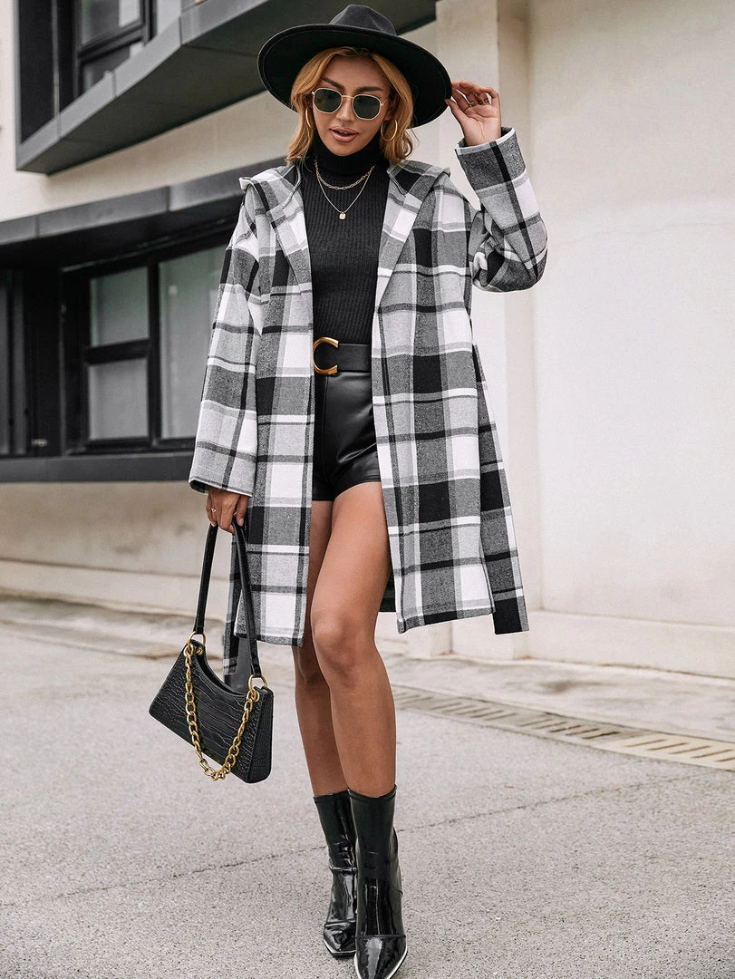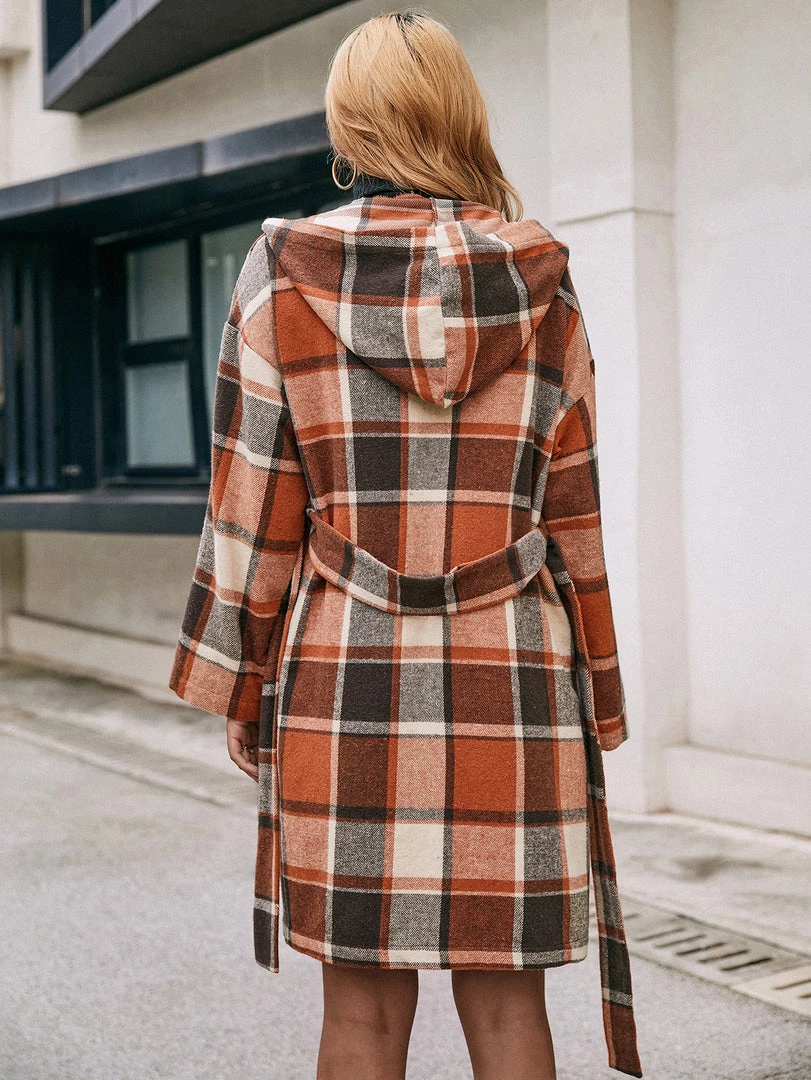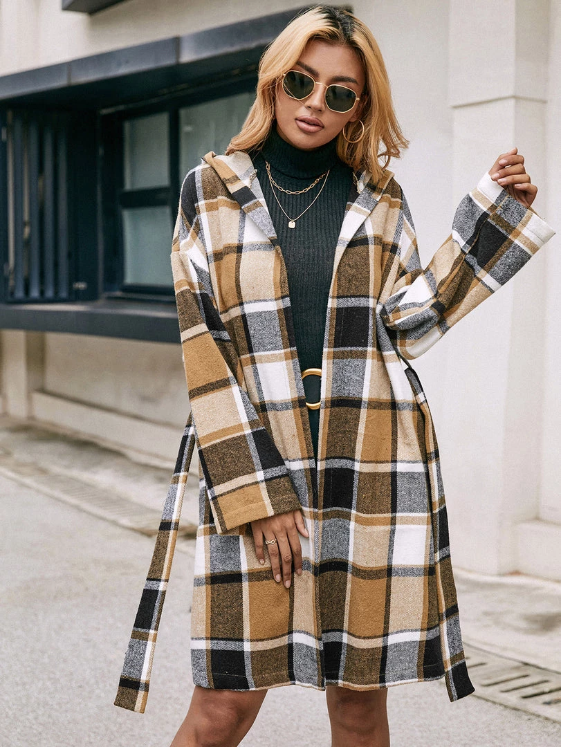 A bold plaid print updates this classic trench coat with eye-catching appeal.