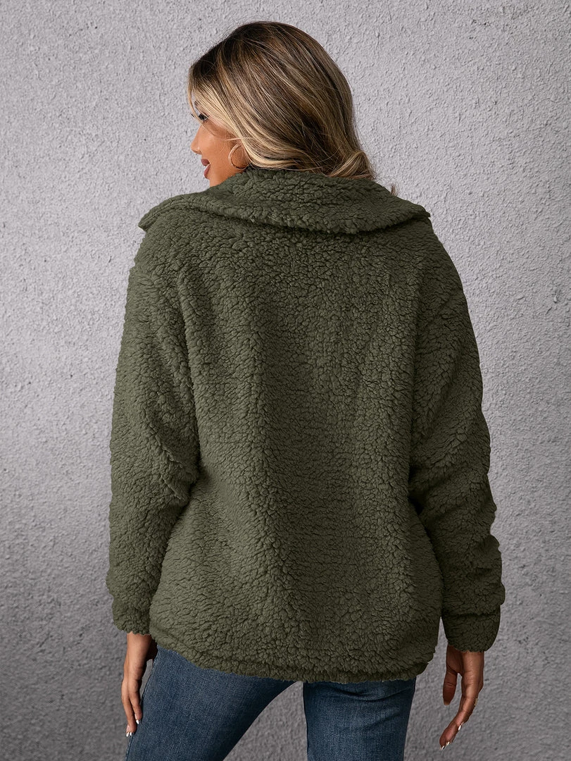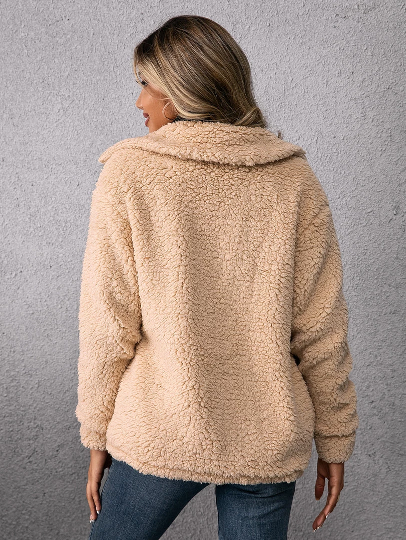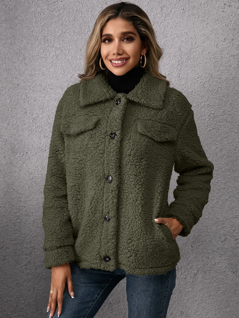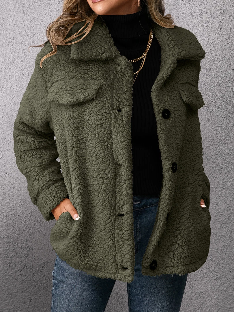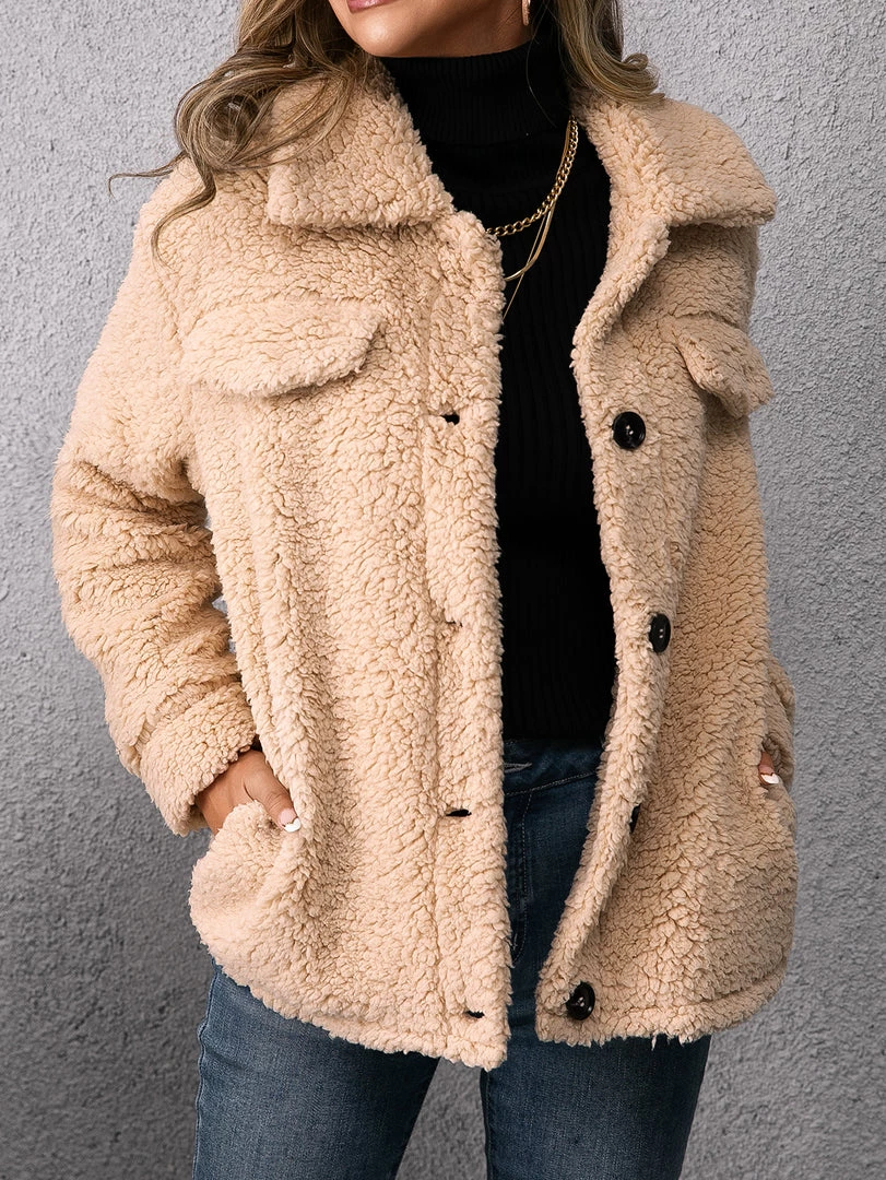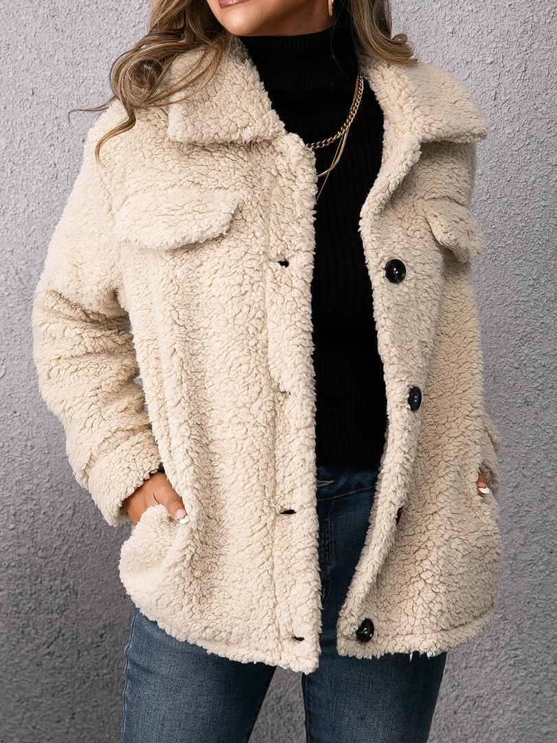 Stay cozy and on-trend during the colder months when you rock this teddy-style coat boasting front pockets and a classic lapel-style collar.