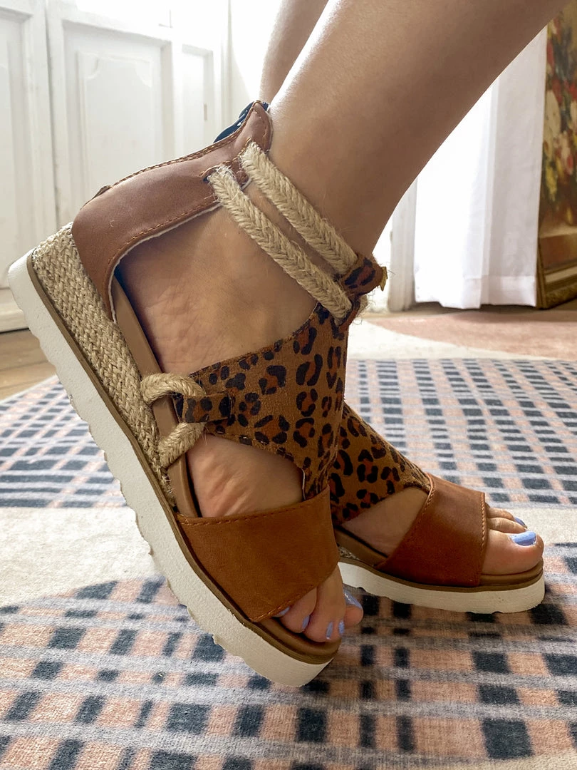 Crafted with rope-like straw straps, this pair of gladiator sandals adds a coastal-inspired feel to your sunny-day strides.