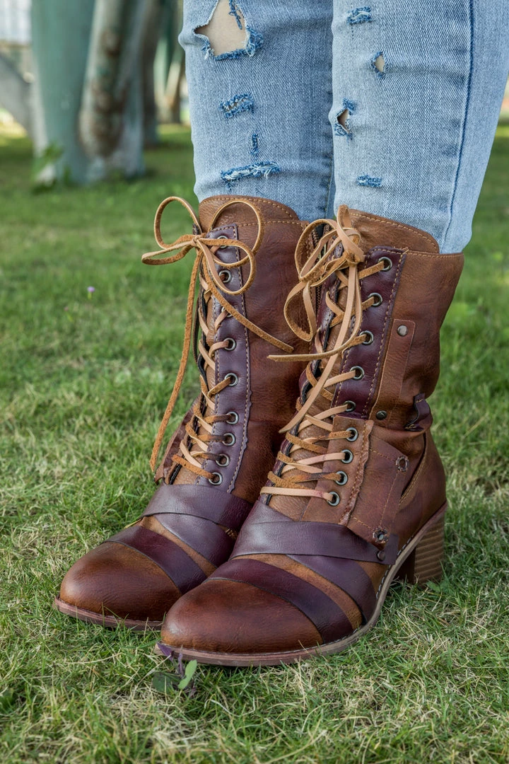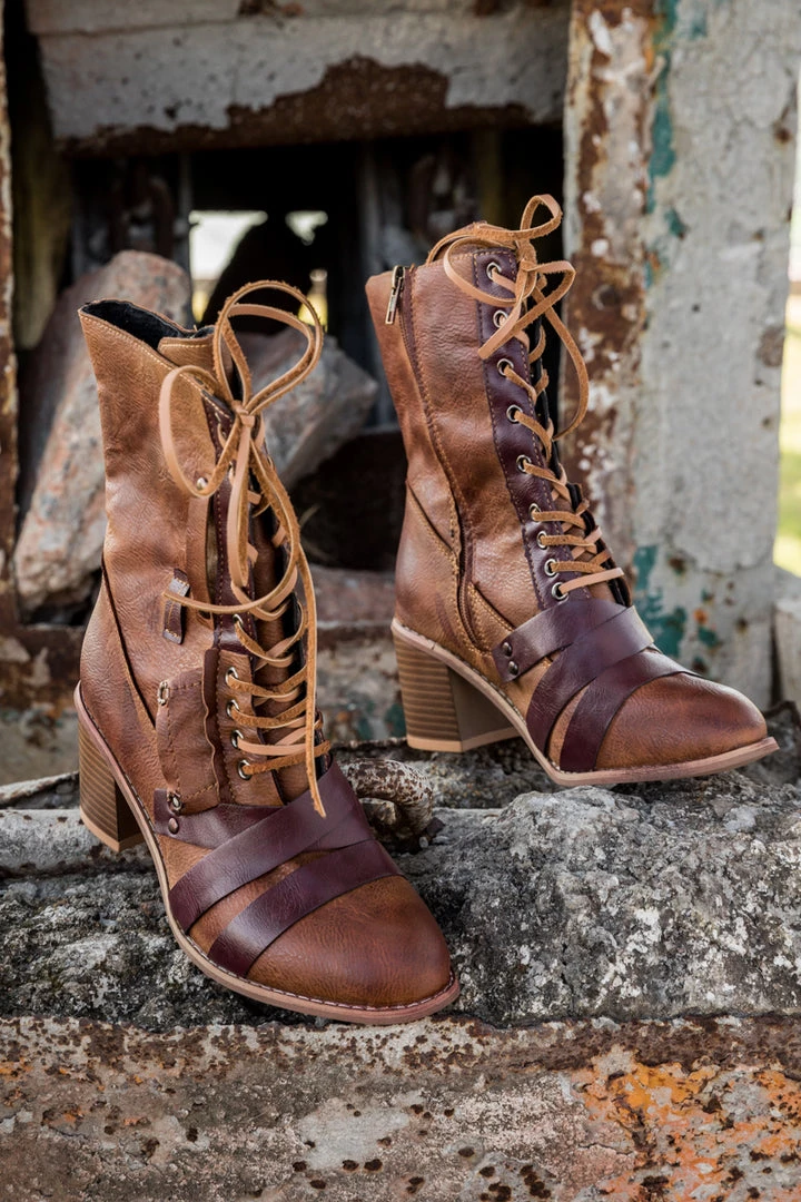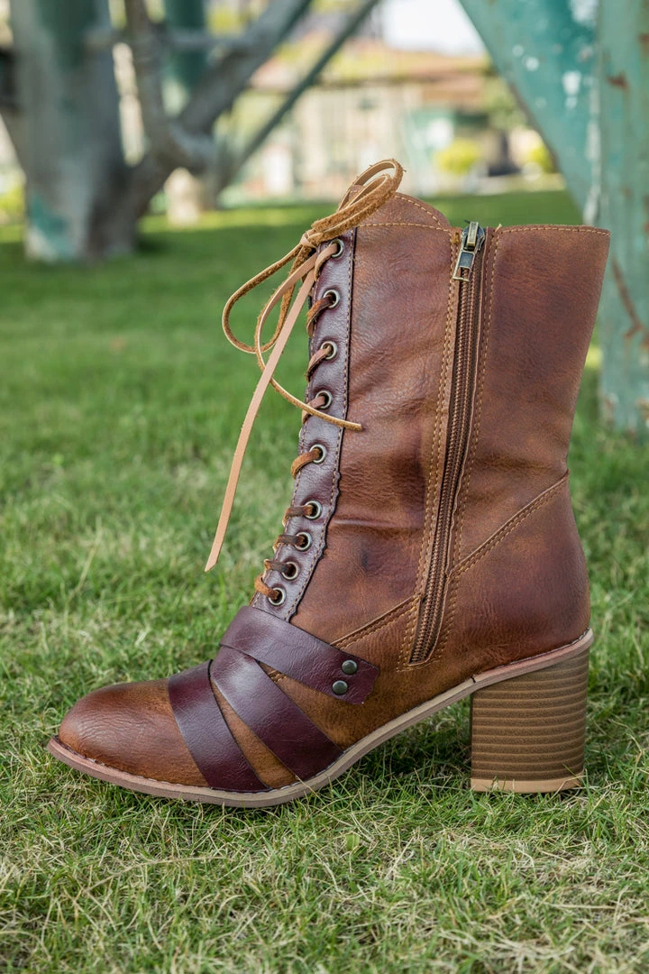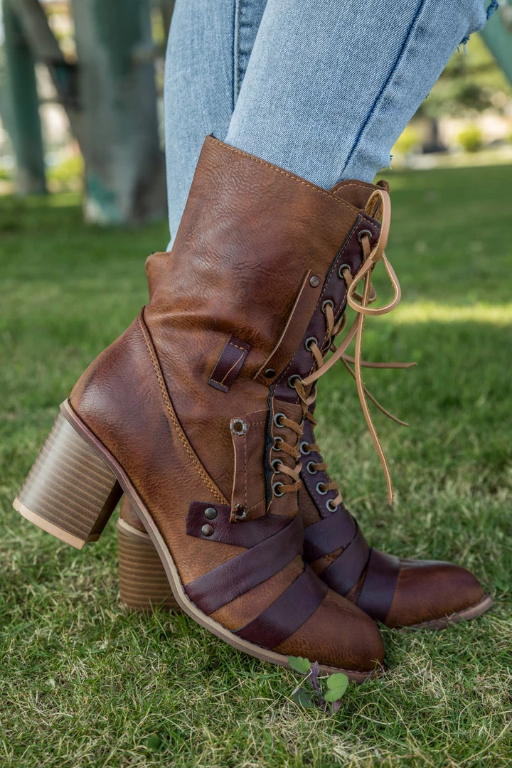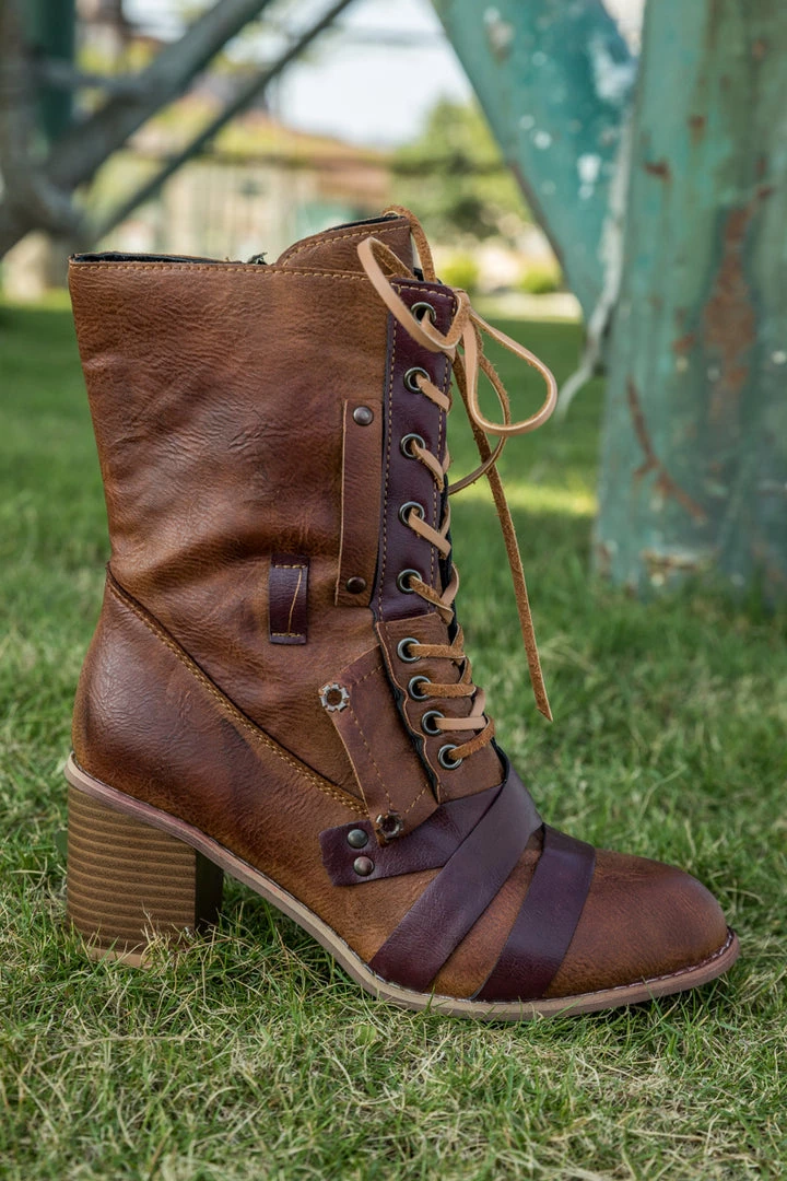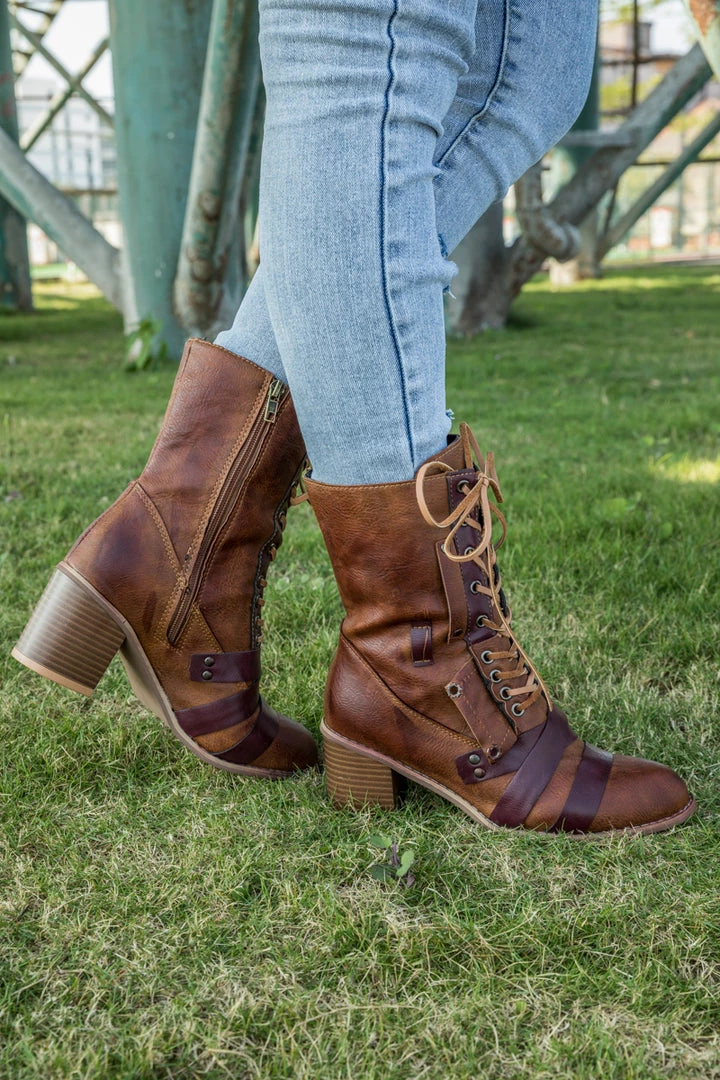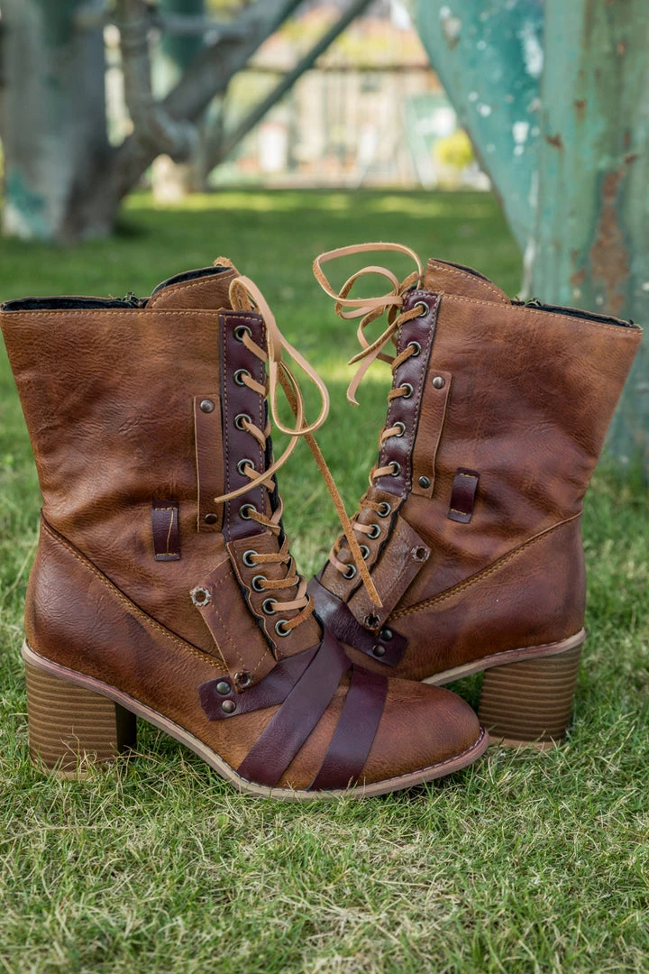 Include an edgy finish to your ensemble with these structured boots that host a strap patch design and subtle hues.