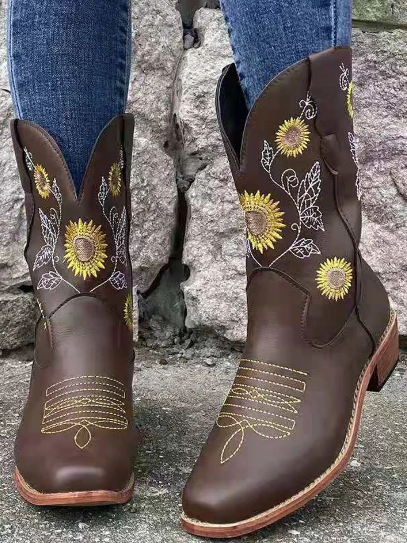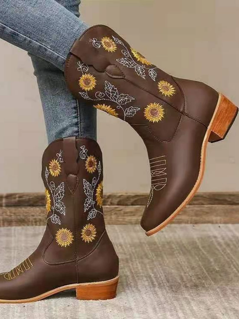 Slip on these elegant cowboy boots to infuse Southwestern-chic to your look. Low heels and detailed floral embroidery add a feminine touch.