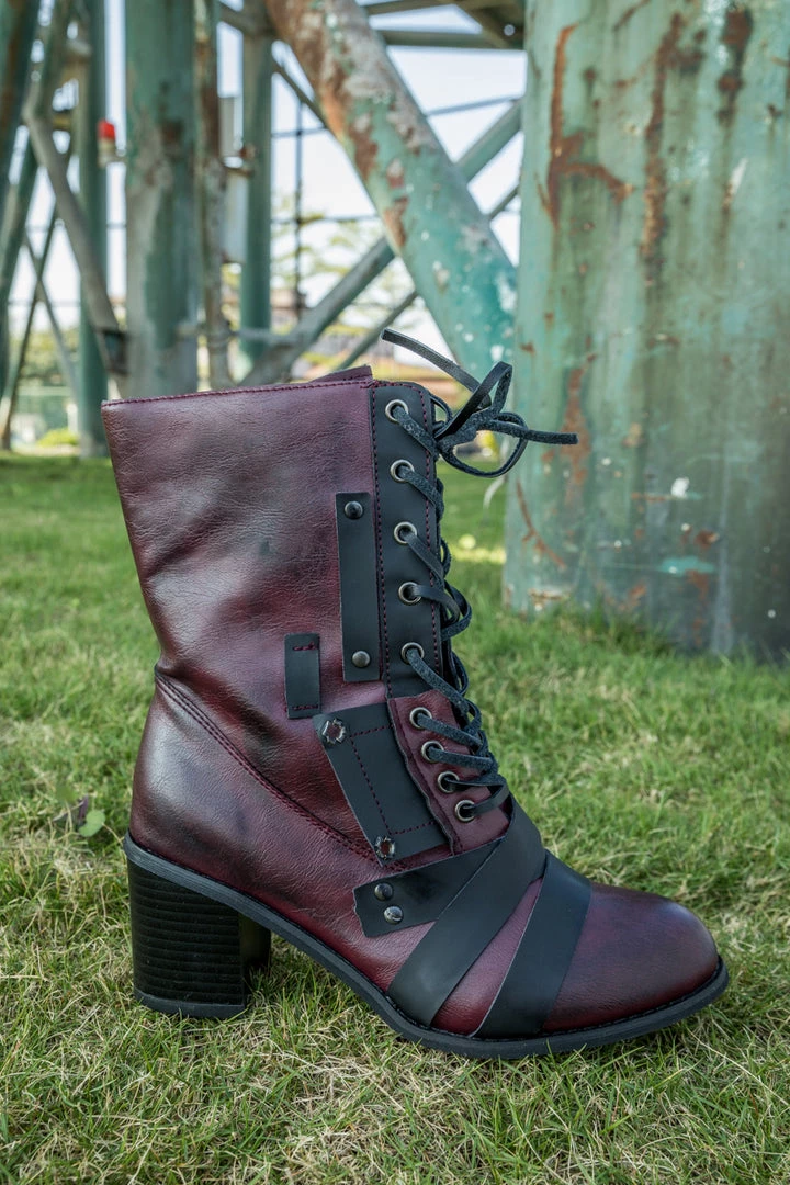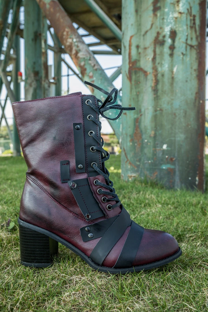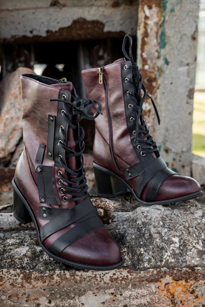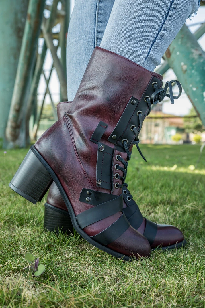 Include an edgy finish to your ensemble with these structured boots that host a strap patch design and subtle hues.