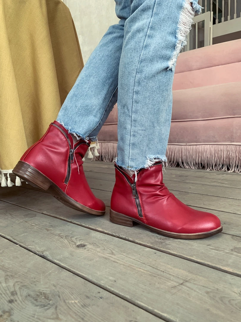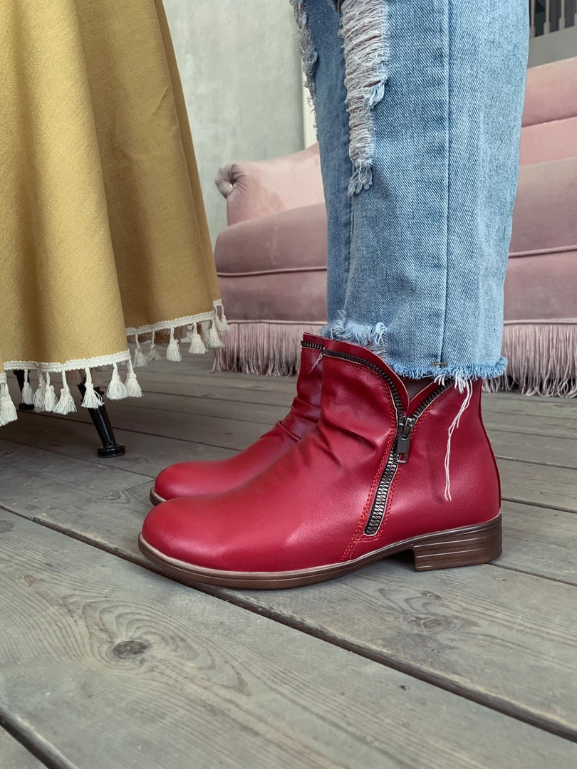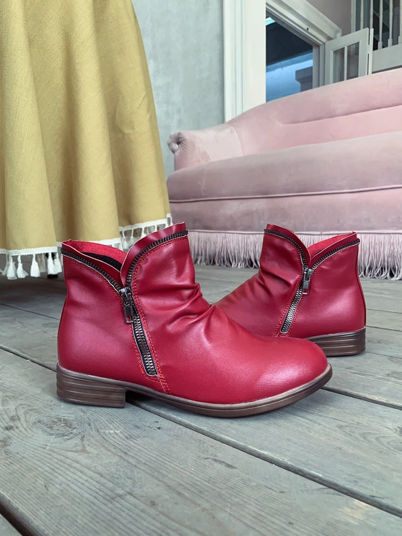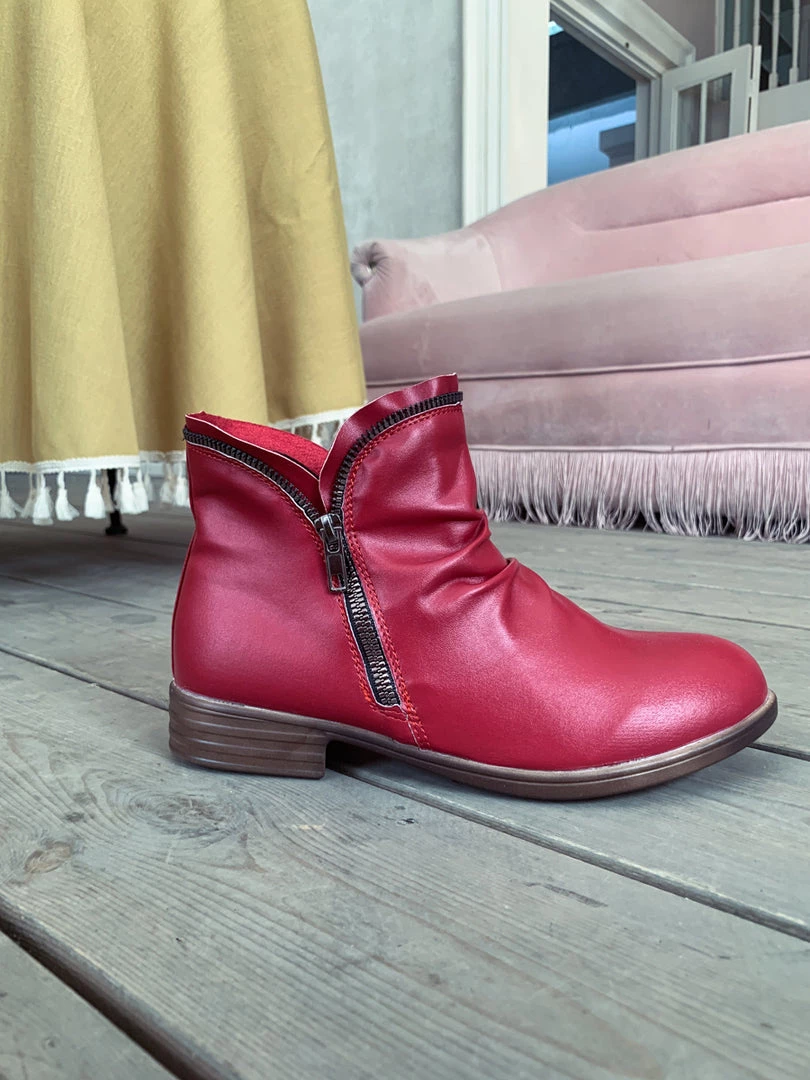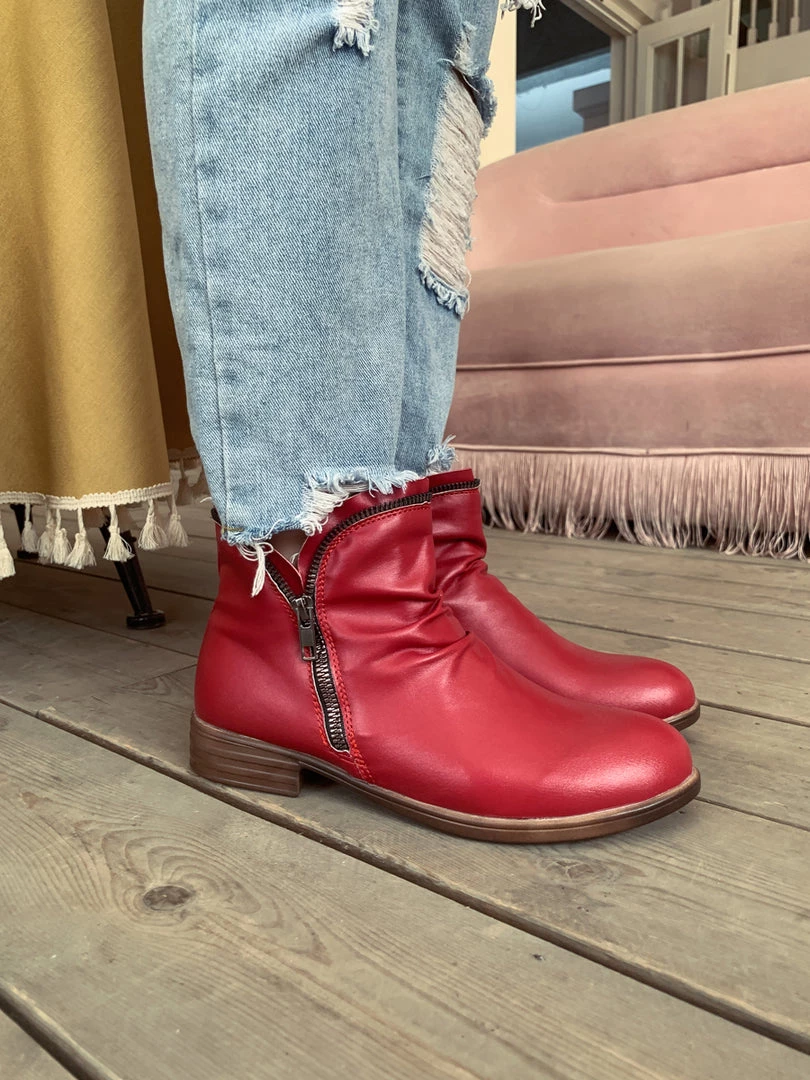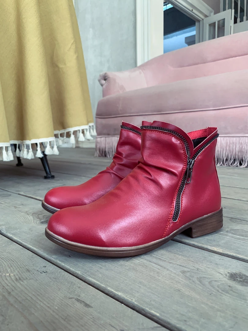 Complement just about any casual look with these ankle boots featuring a zip trim sew one the side.