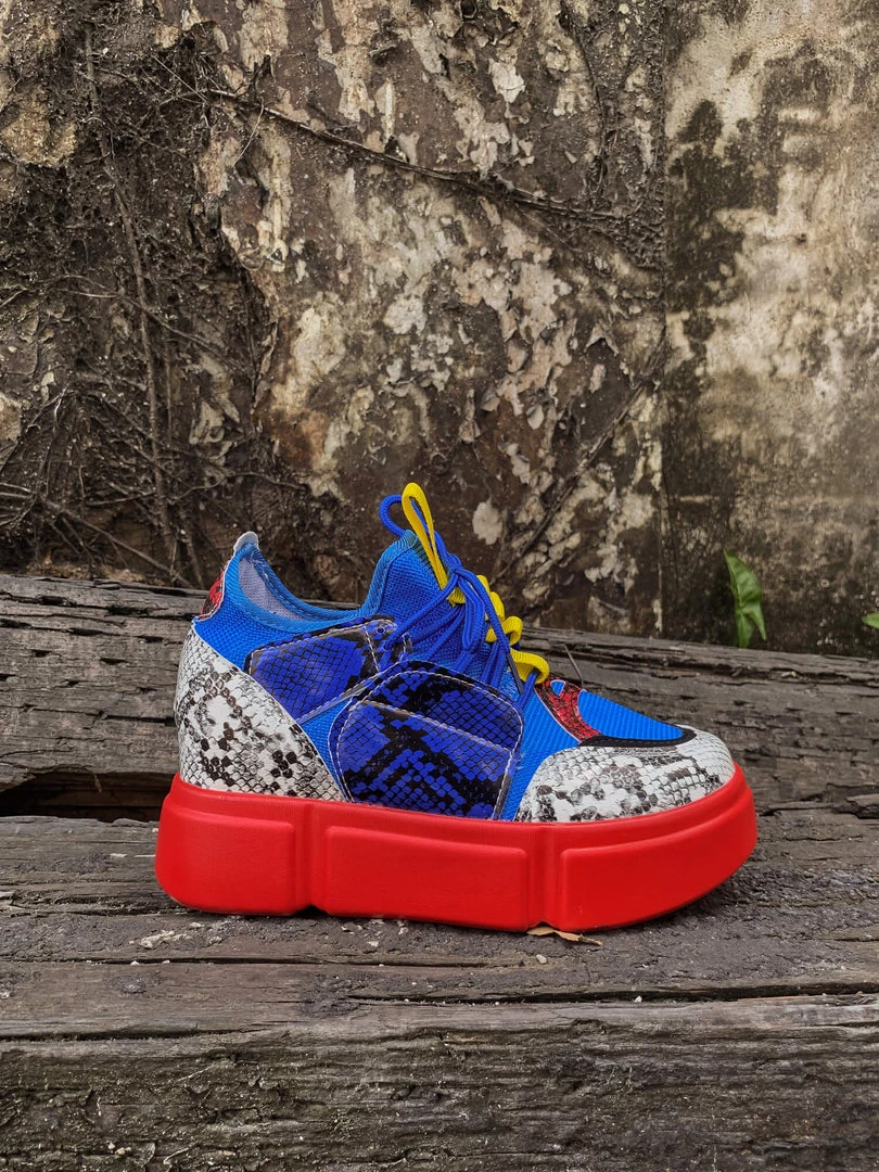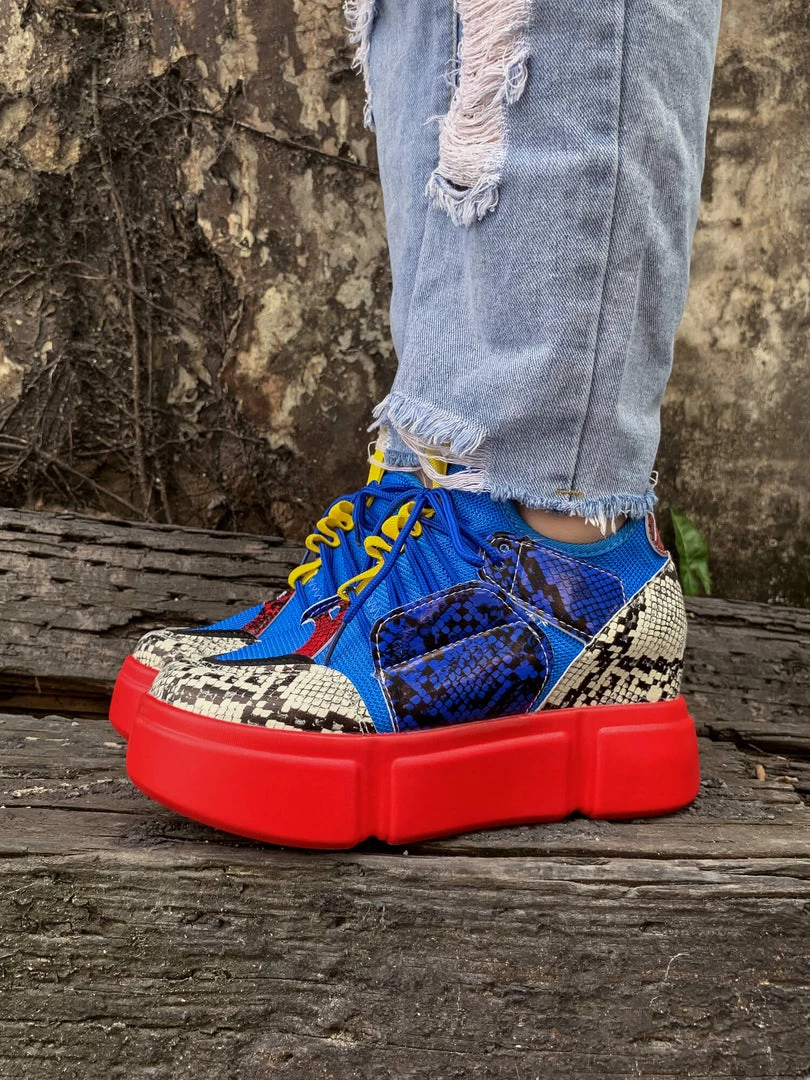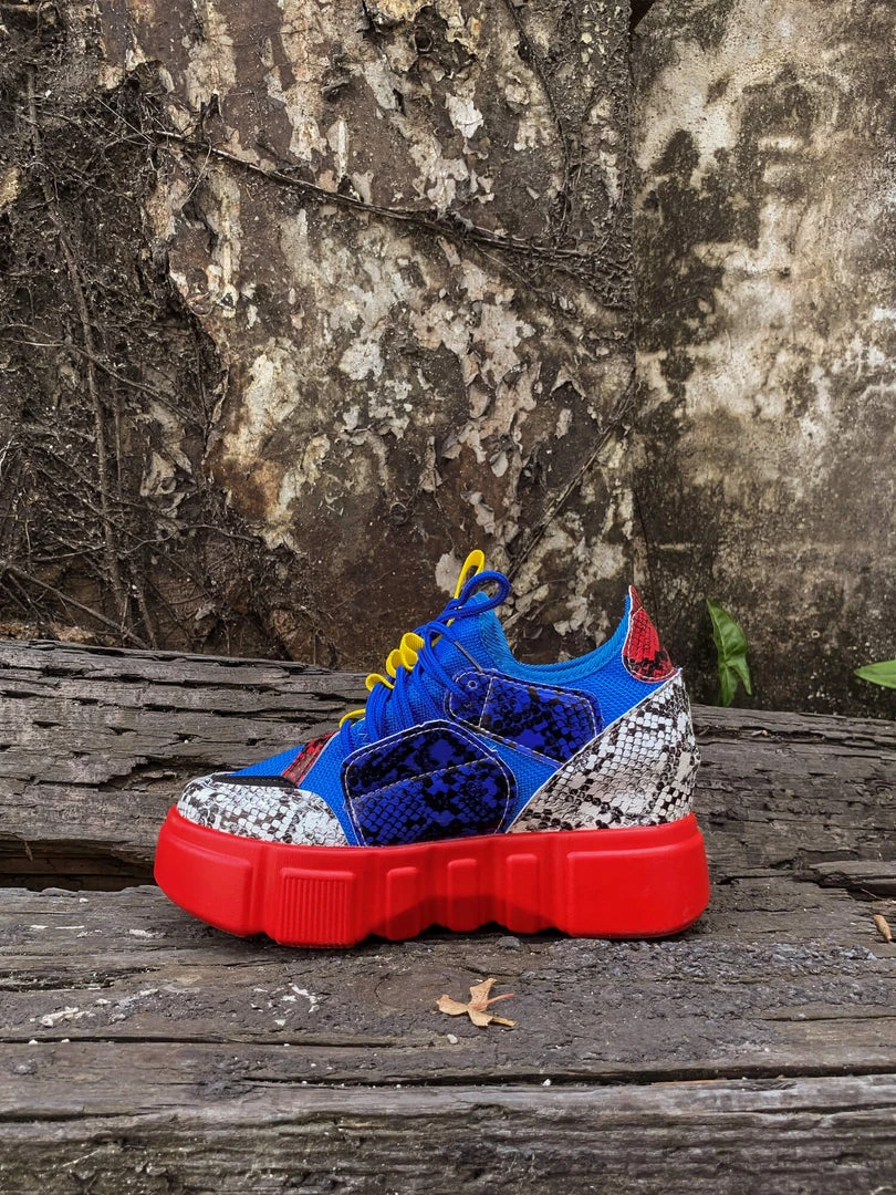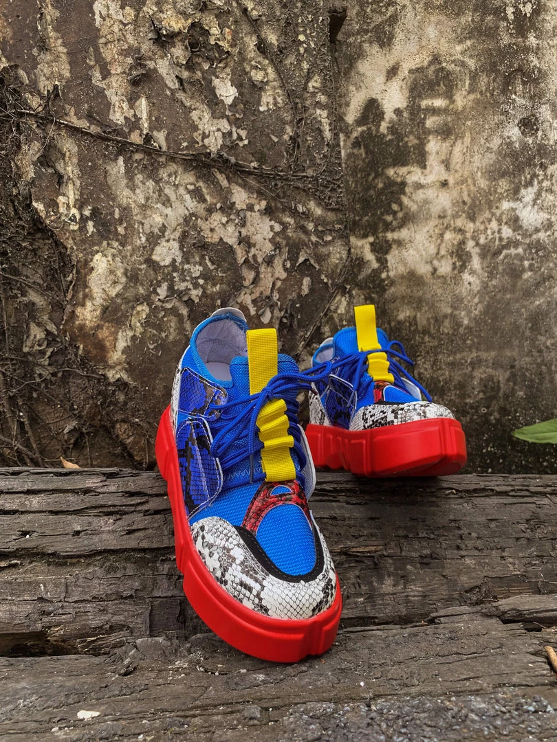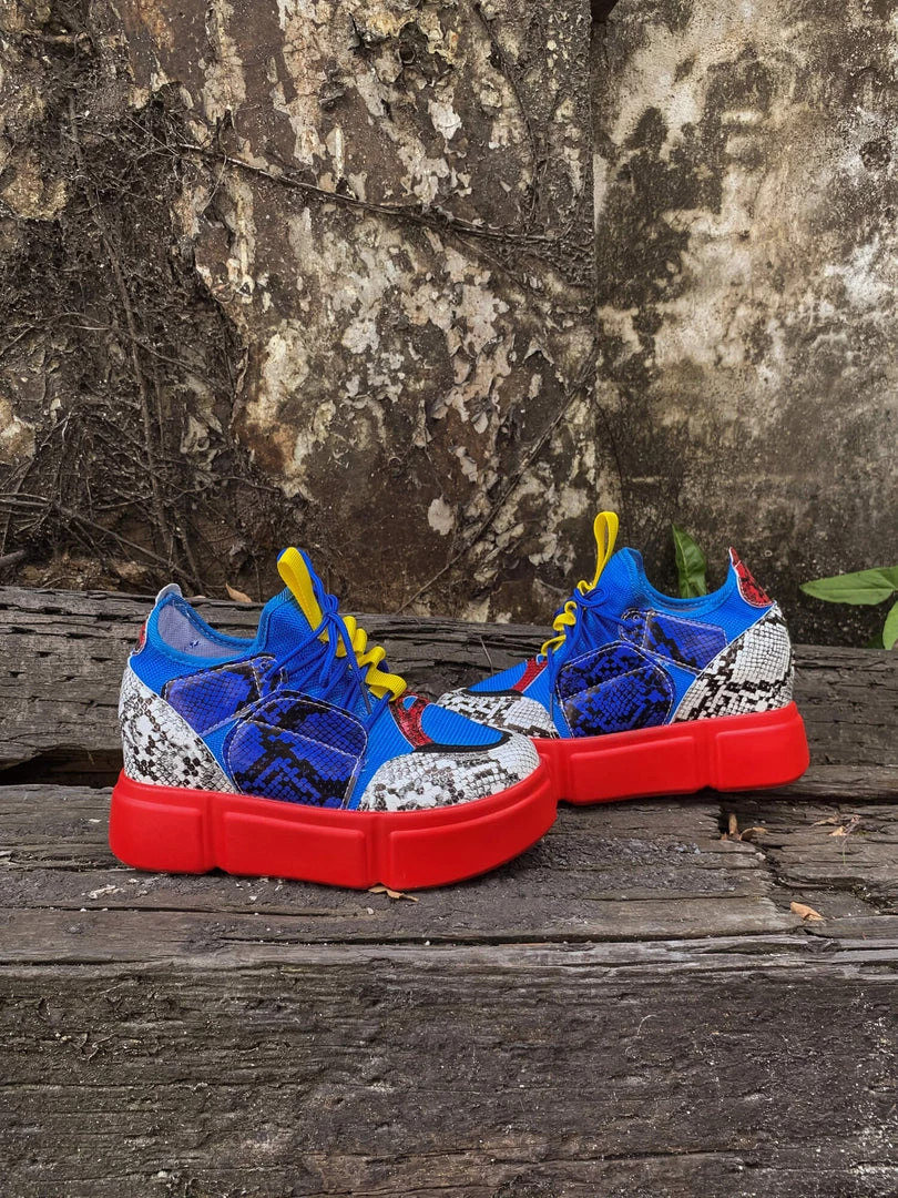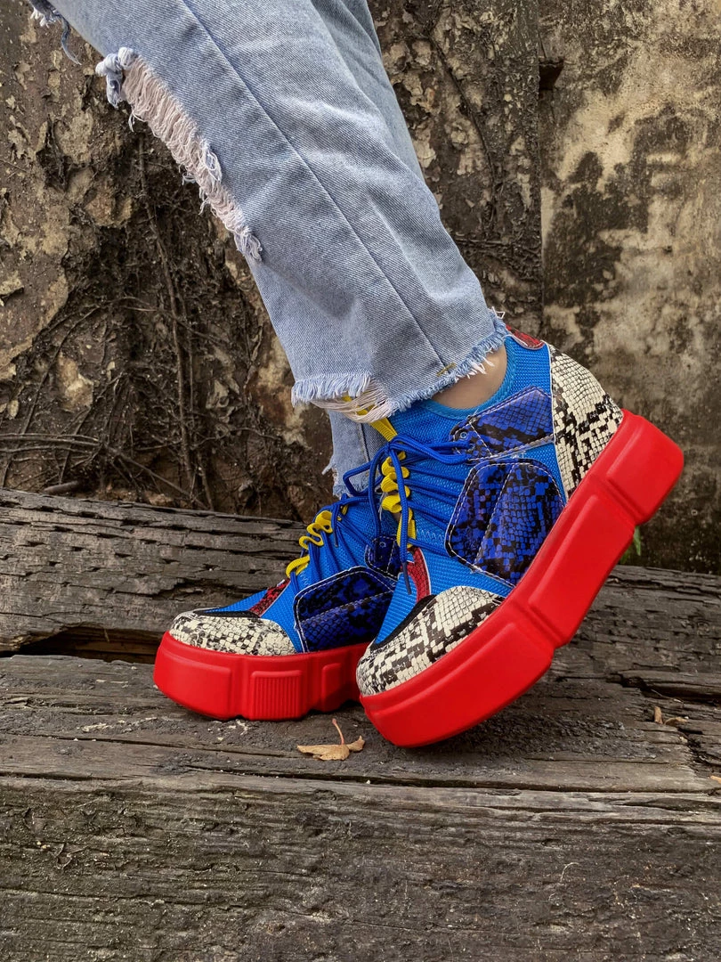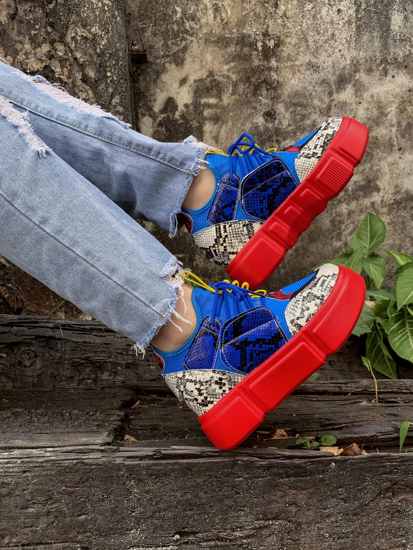 Showing off a snake print and leopard pattern, wearing this sneaker can boost your casual style with wild appeal. A lightweight, breathable construction delivers comfortable feels with every step.