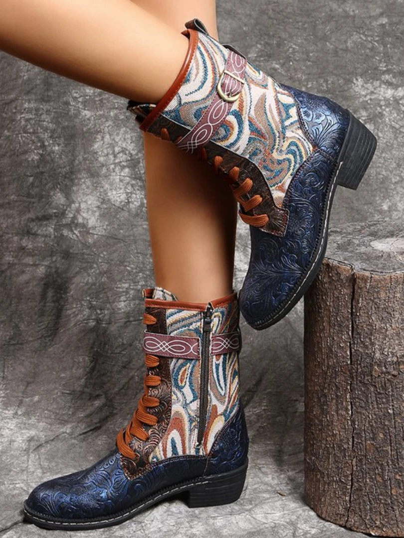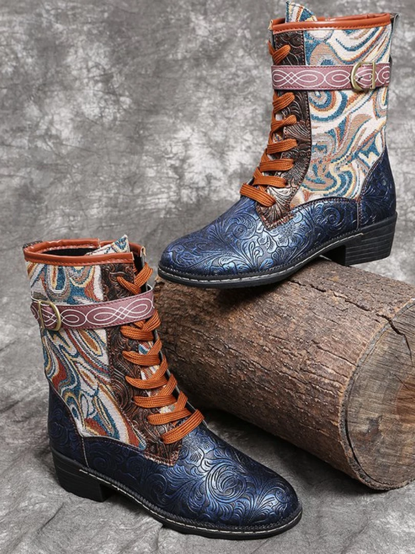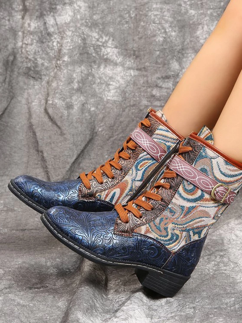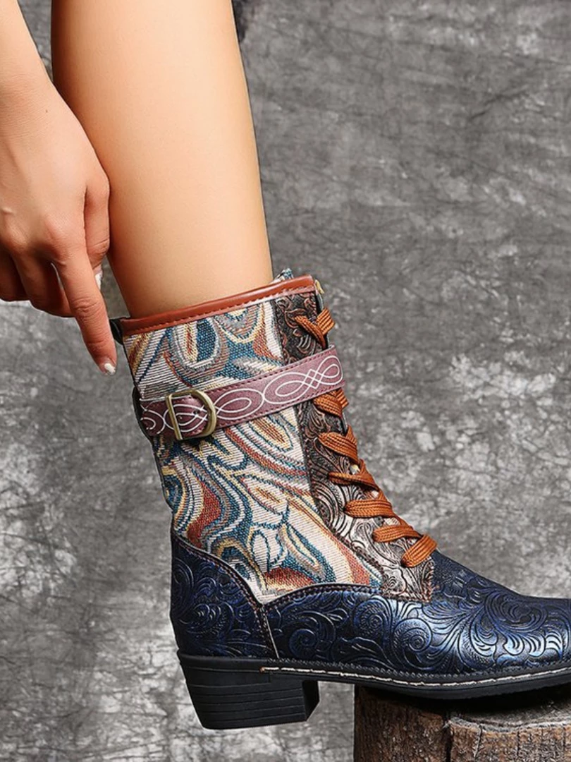 Designed to be a work of art that you can wear, these floral embossed ankle boots feature a vibrant floral design make your elegant looking.