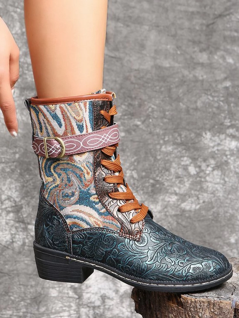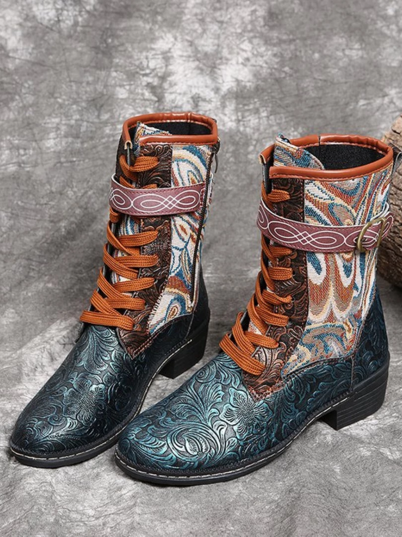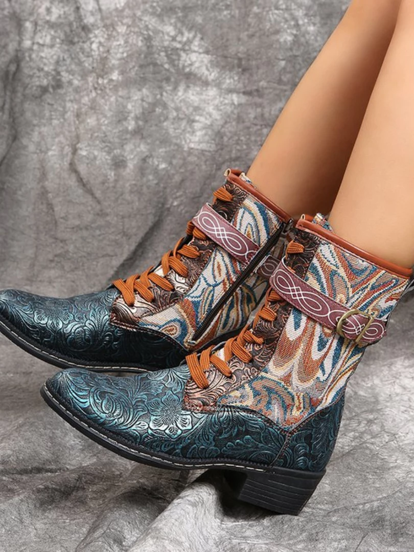 Designed to be a work of art that you can wear, these floral embossed ankle boots feature an elegant green floral design make your magnificent looking.