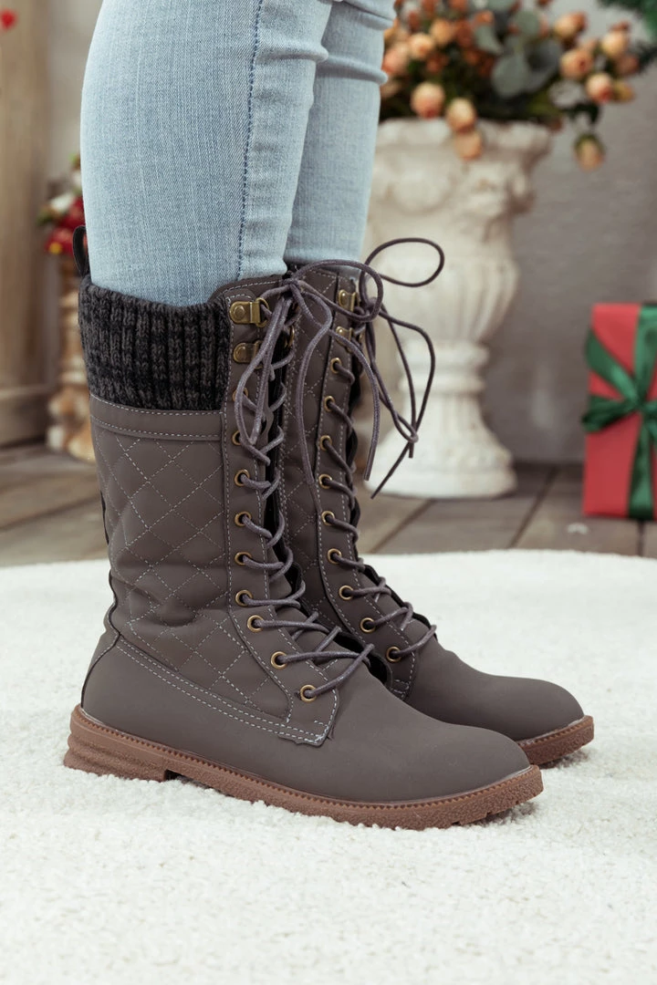 Combat the cold with these snow-ready boots equipped with cozy ribbed cuffs and chic buckled straps.