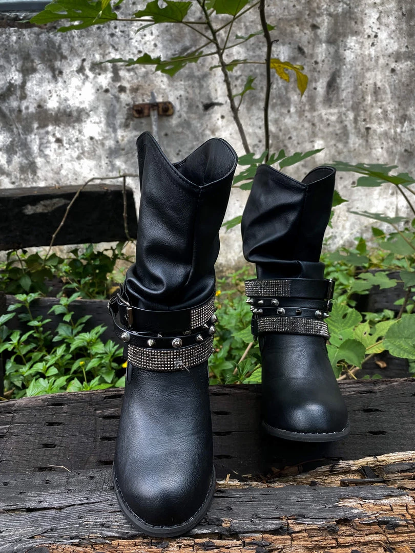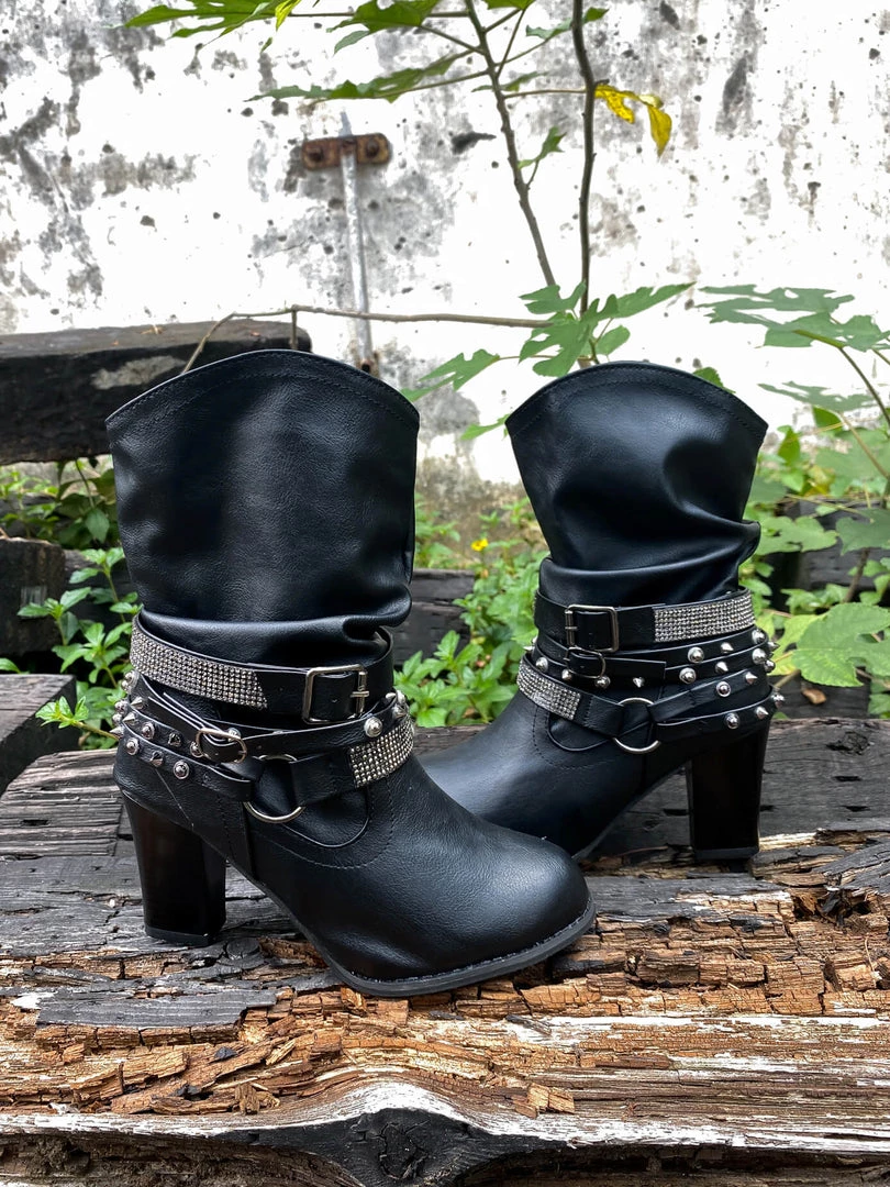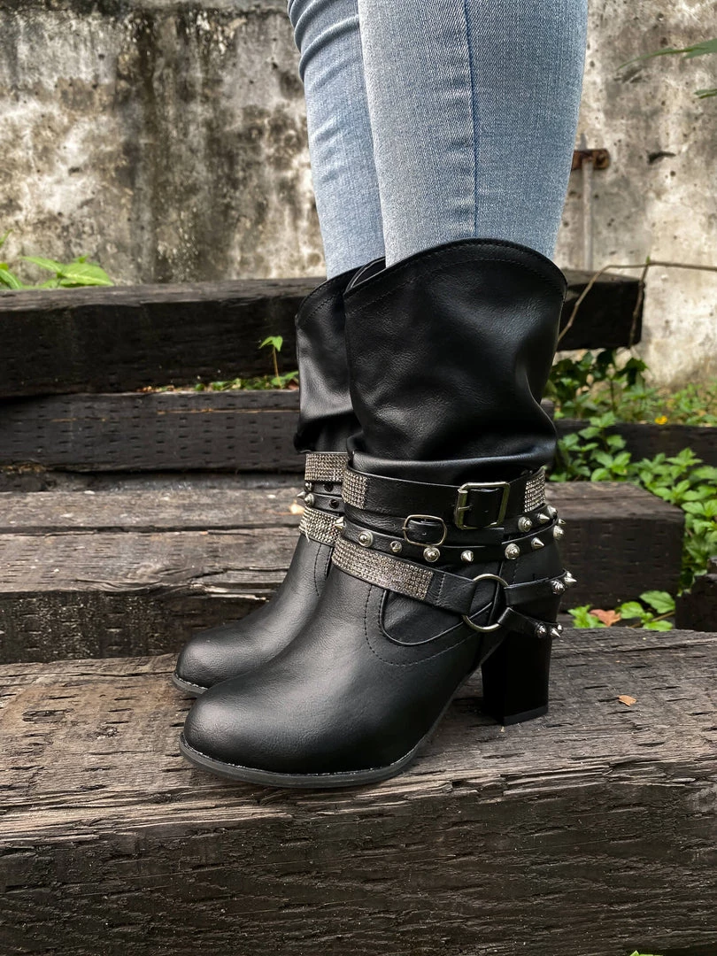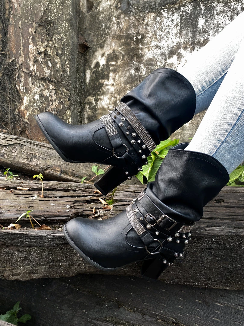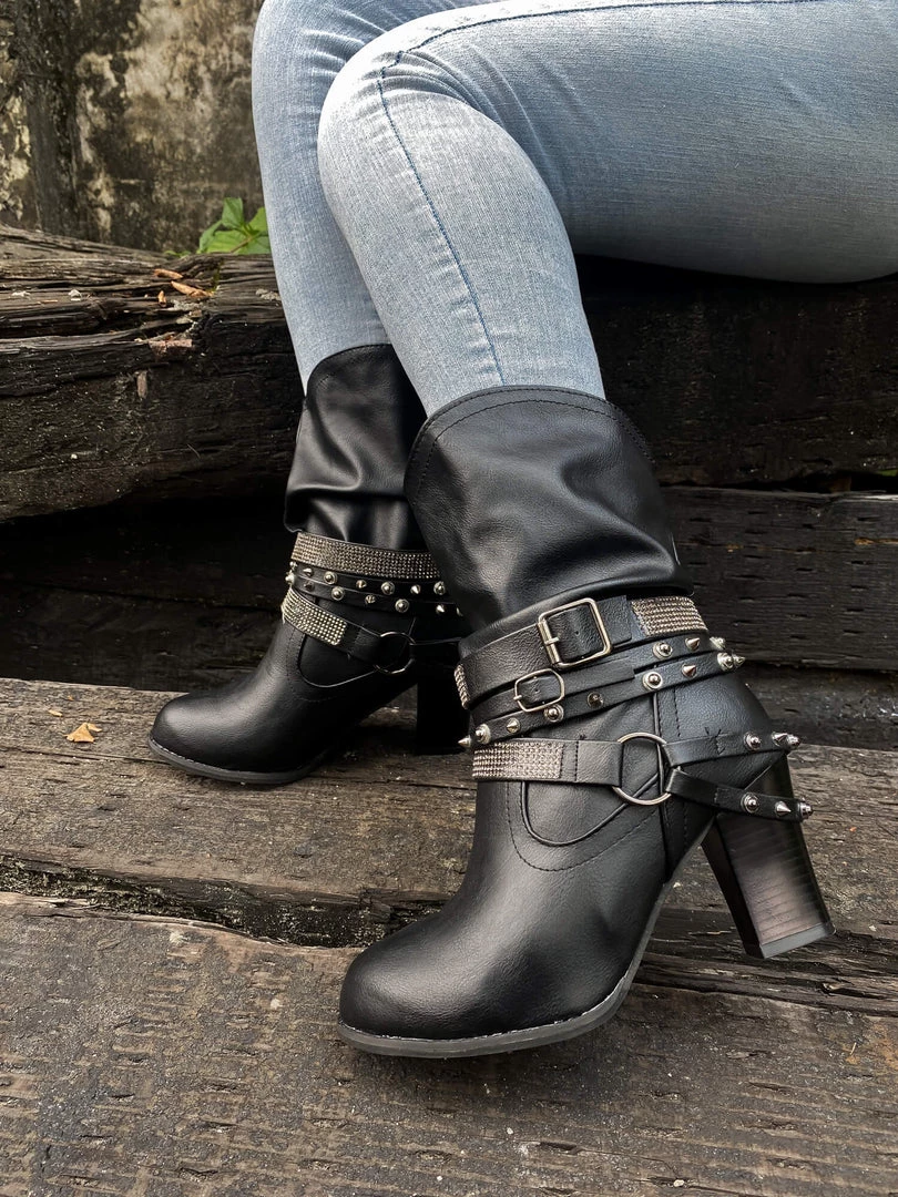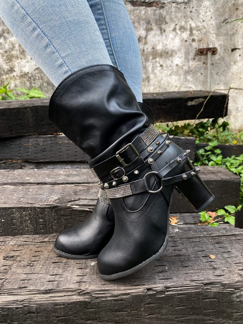 Add a dash of bohemian attitude to your strides when you step out in these relaxed boots featuring strap-wrapped design. The block heel adds a boost of flattering height while the skid-resistant sole keeps you secure.