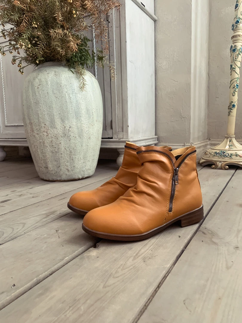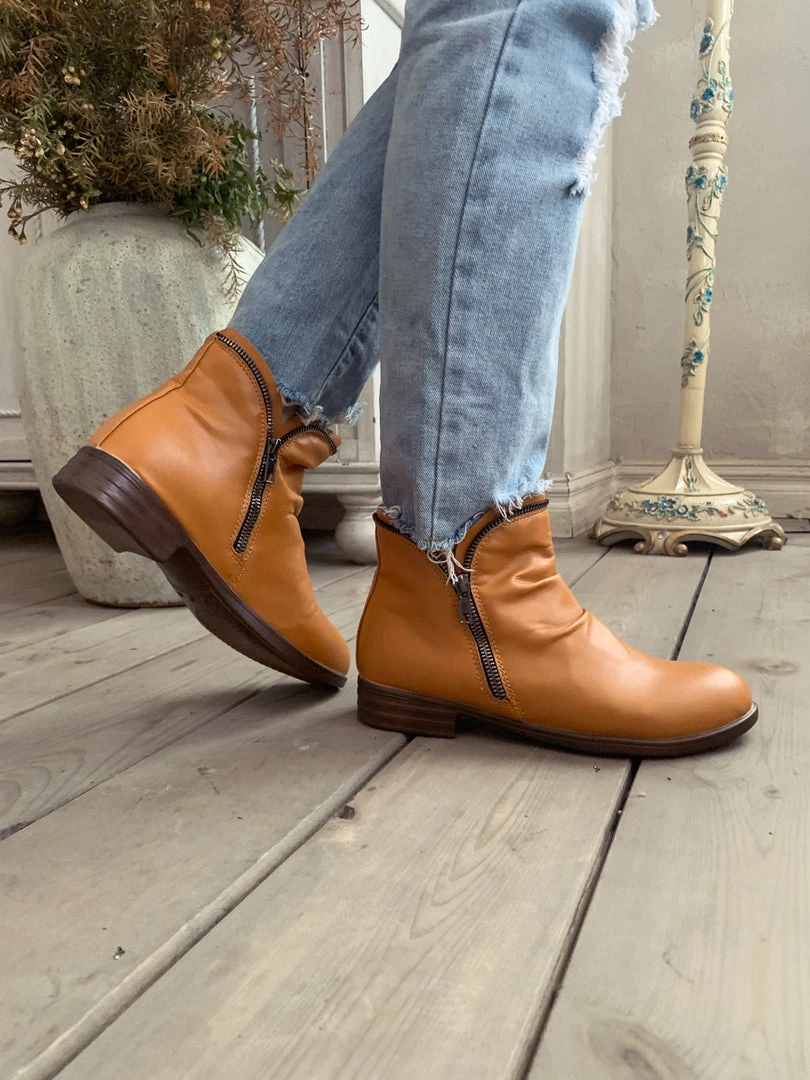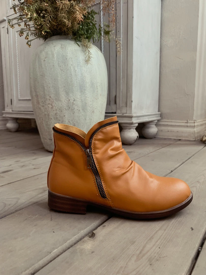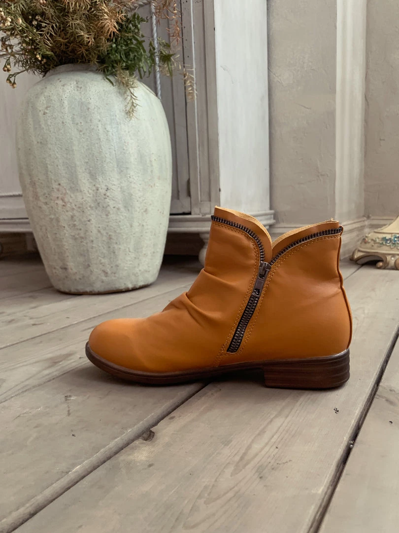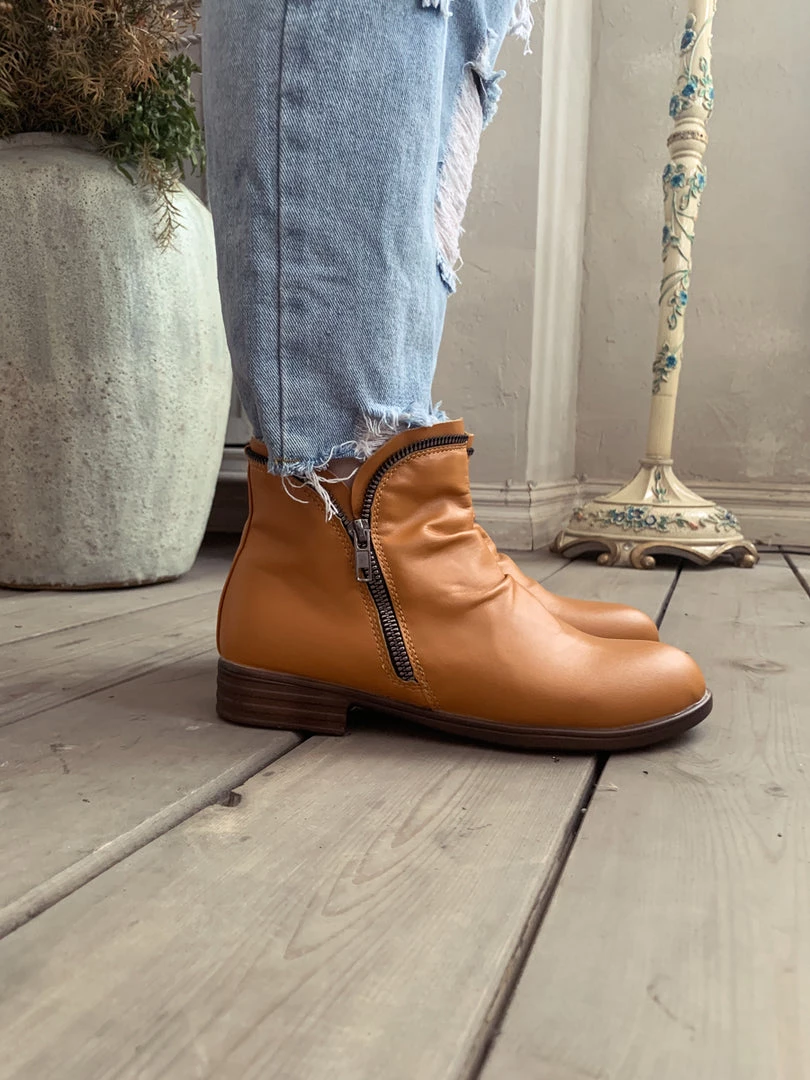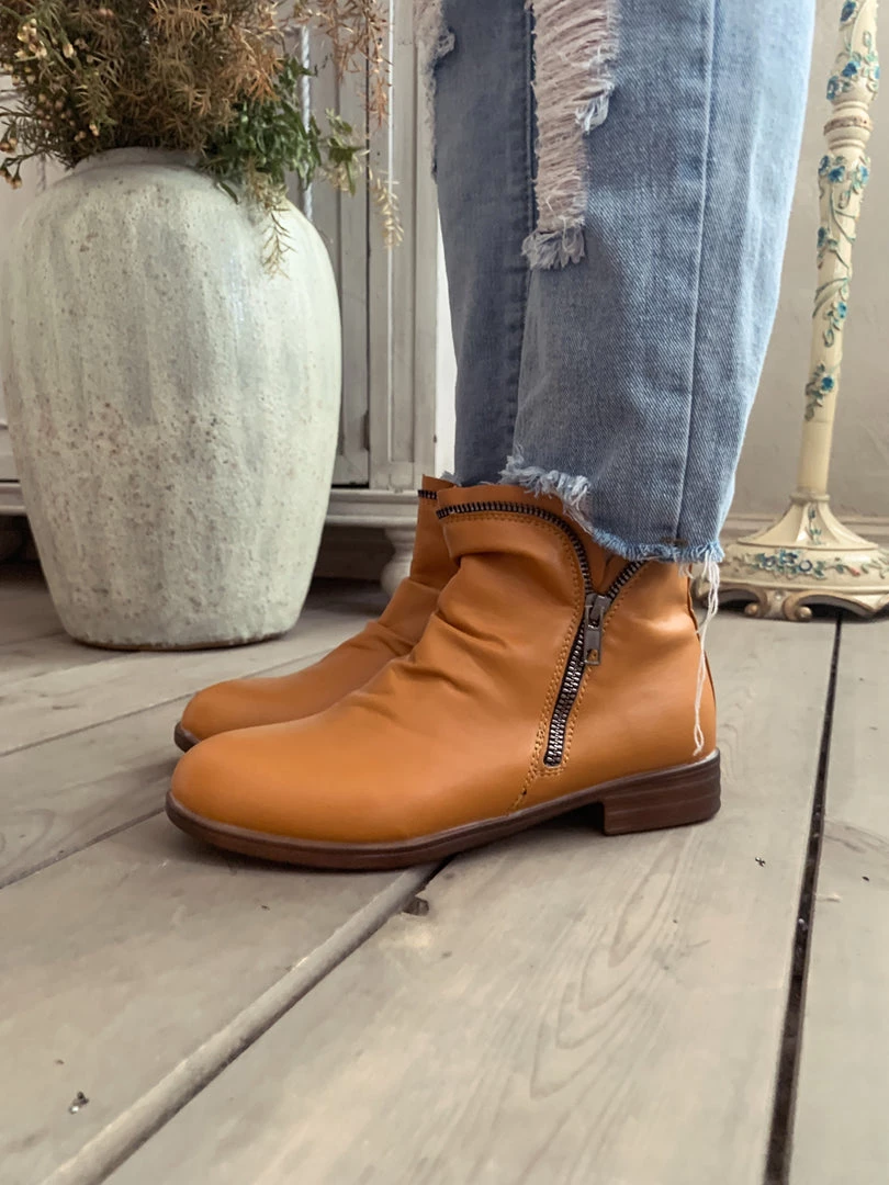 Complement just about any casual look with these ankle boots featuring a zip trim sew one the side.